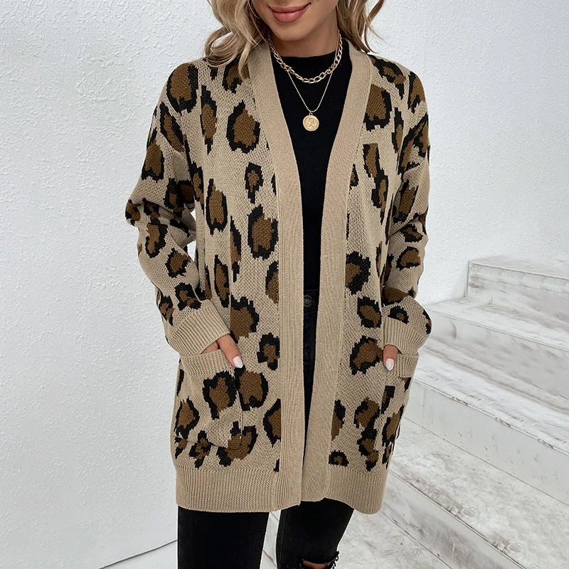 «Women's Contrast Color Leopard Knit Jacket Fashion Casual Loose Lengthened Pocket Cardigan 2023 Spring Street Trendy Cardigan» по лучшей цене на рынке! Всего за 25$ (2375рублей)