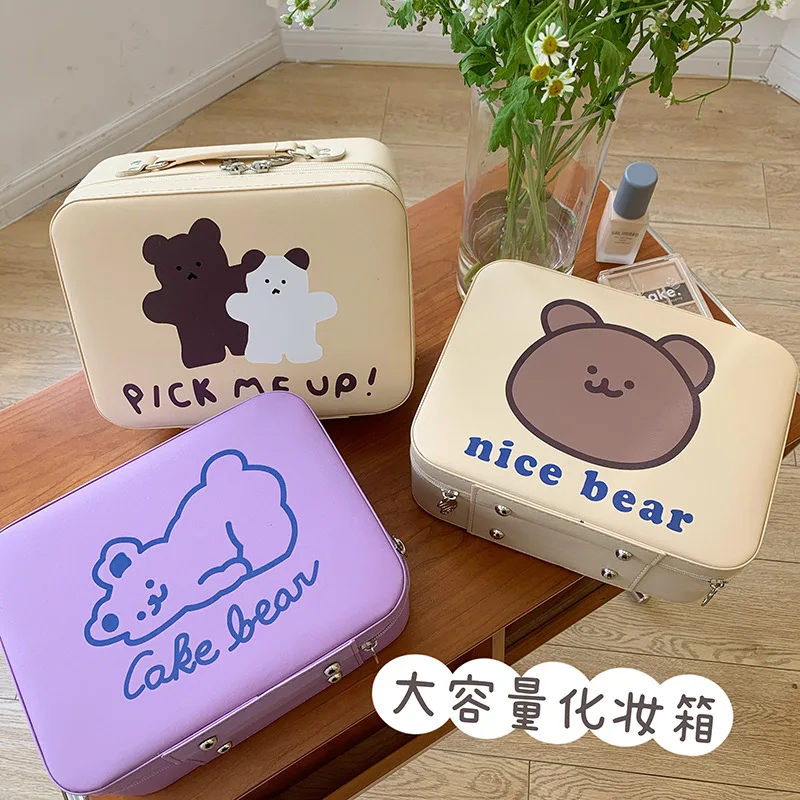 QJKsWkwYMnLooked for Women's Cute Cartoon Bear Printing Makeup Box Simple Style Lolita Portable Large Capacity Cosmetic Bag Kawaii Zipper Storage Box for a long time, but could not find it? Bring to your attention Women's Cute Cartoon Bear Printing Makeup Box Simple Style Lolita Portable Large Capacity Cosmetic Bag Kawaii Zipper Storage Box with the best price!