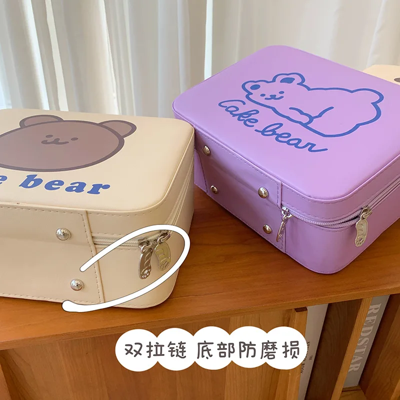 "Women's Cute Cartoon Bear Printing Makeup Box Simple Style Lolita Portable Large Capacity Cosmetic Bag Kawaii Zipper Storage Box" * Buy Now Just For 6$