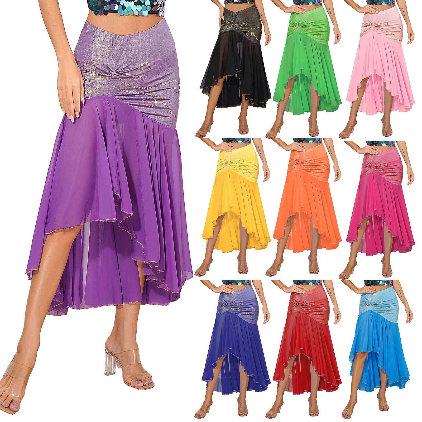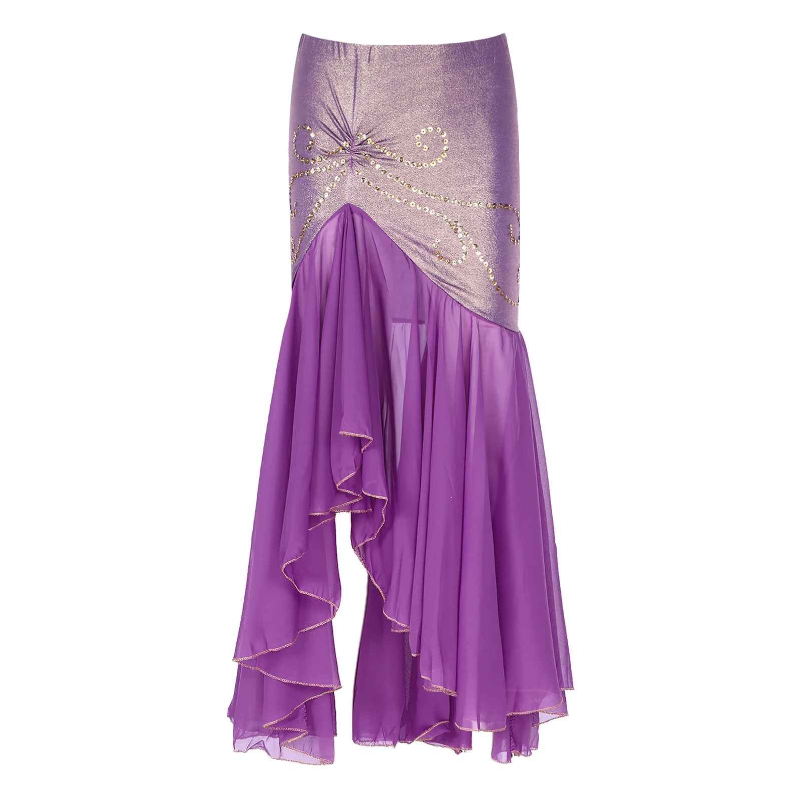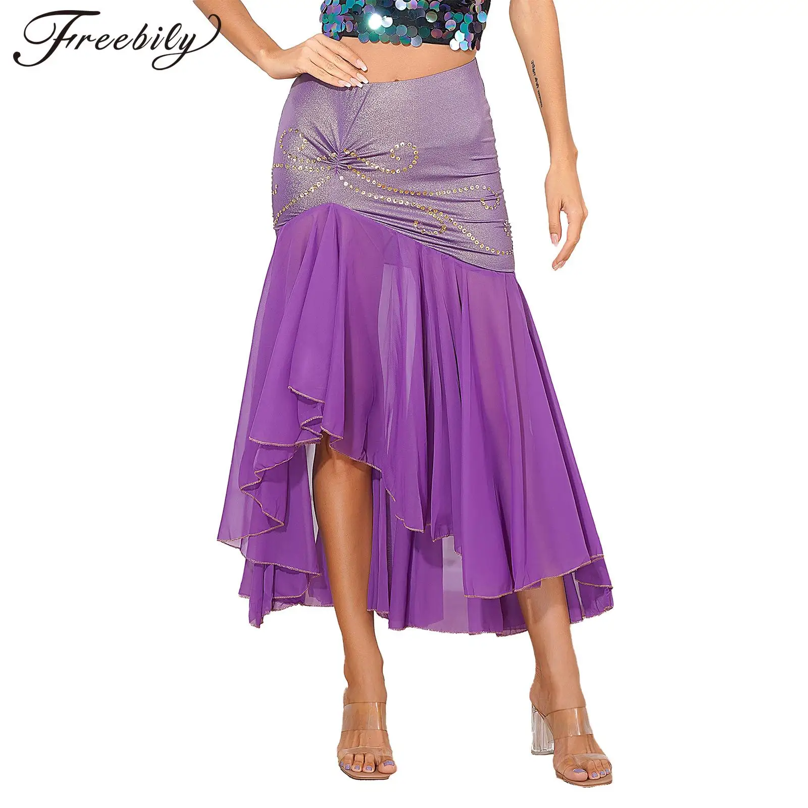 qTmLtqNVyBHere you can buy Womens Irregular Hem Belly Dance Skirt Metallic Ruched Patchwork Sequins Ruffle Skirts Carnival Stage Performance Costume with free delivery to your post office.