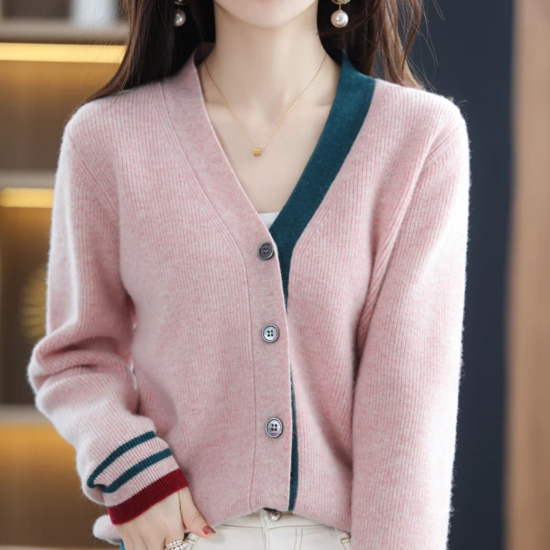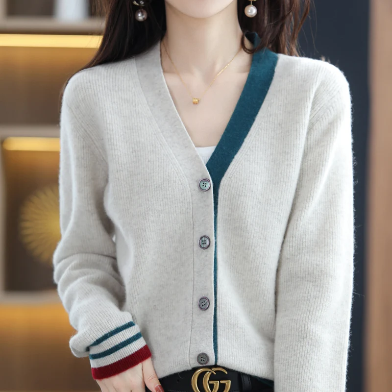 kzGXBKYuДолго искали Women's Knit Cardigan Sweater Colorblock V-Neck Design Simple Elegant Pure Wool Retro Soft Single Breasted Loose Casual Fashion, но не могли найти? Предоставляем вашему вниманию Women's Knit Cardigan Sweater Colorblock V-Neck Design Simple Elegant Pure Wool Retro Soft Single Breasted Loose Casual Fashion по лучшей цене на рынке!