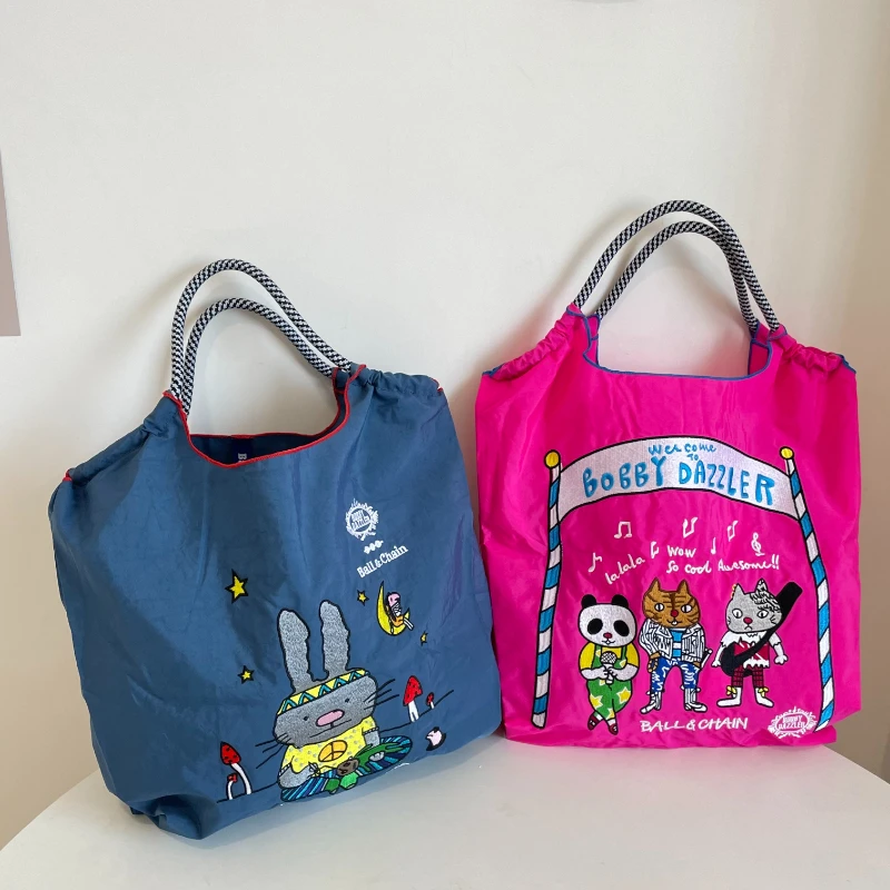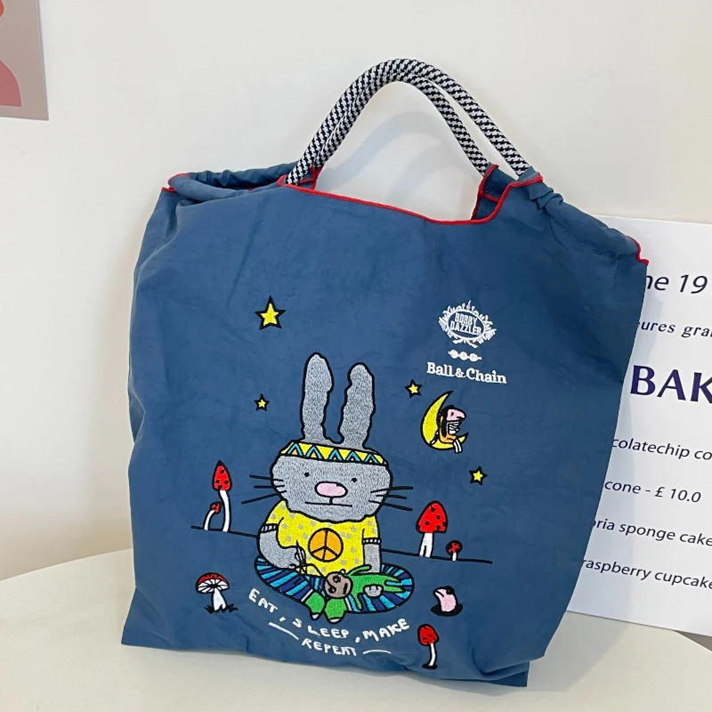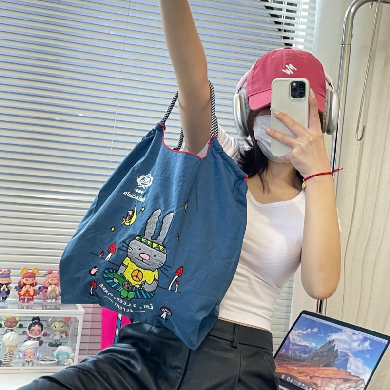 ZxhbEvKiHere you can buy Women's One-Shoulder Messenger Bag Cartoon Embroidered Nylon Cloth Rabbit Panda Band Printed Shopping Environmentally Friendly with free delivery to your post office.