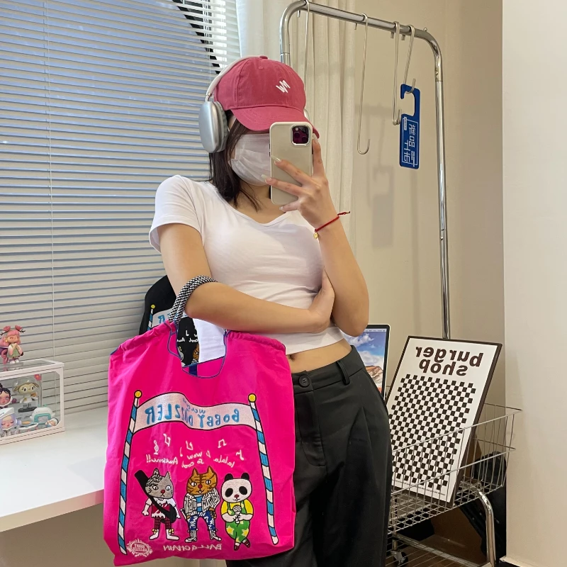 "Women's One-Shoulder Messenger Bag Cartoon Embroidered Nylon Cloth Rabbit Panda Band Printed Shopping Environmentally Friendly" * Buy Now With Free Shipping Just For $23