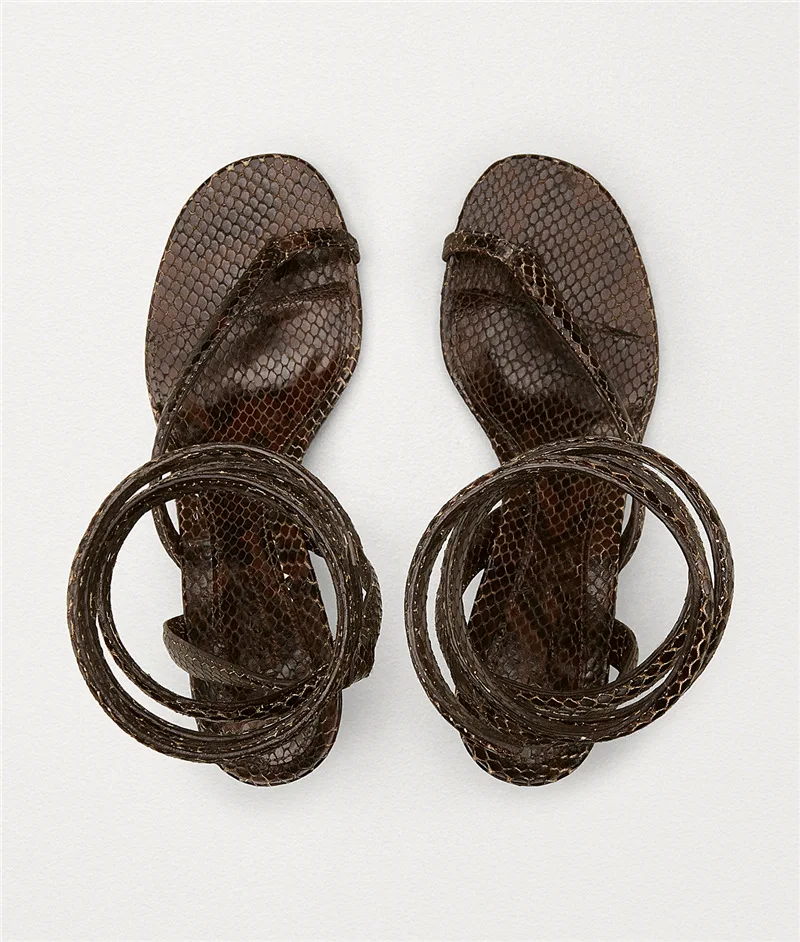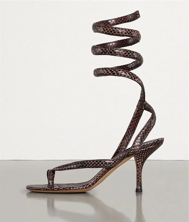 "Women's Open Toe Snake Print Flip Flops Flip Flops Stilettos Ankle Wrap Straps Summer Print Sandals Sexy Slingbacks Plus Size 43" * Buy Now Just For 68$