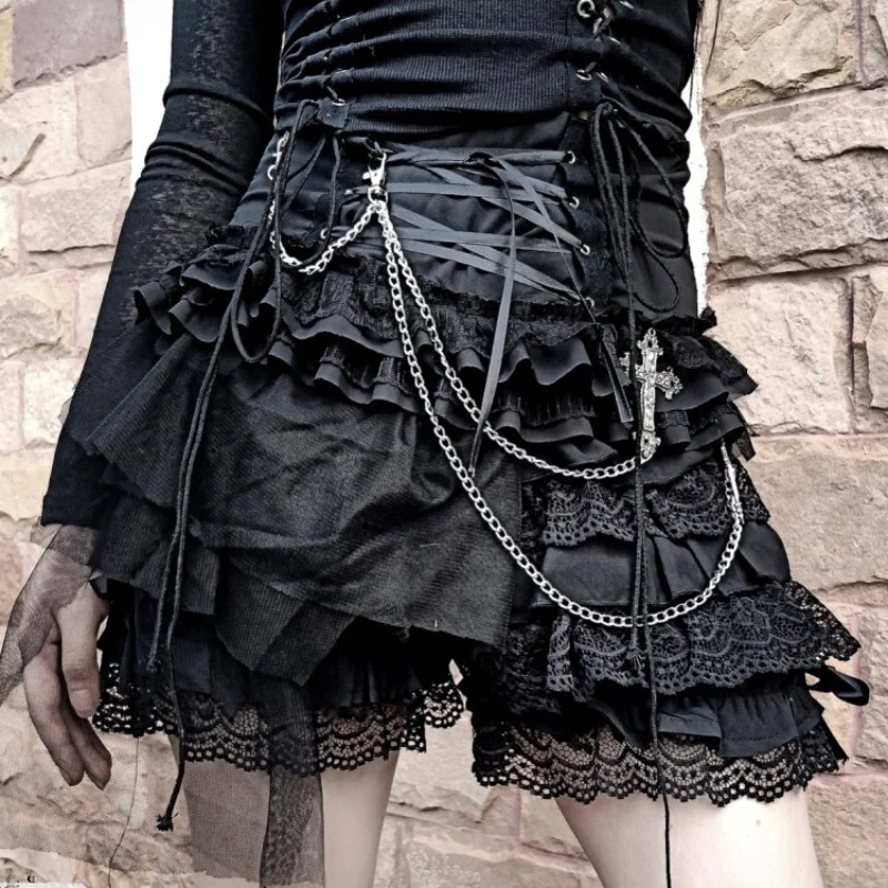 oDTirrfqHere you can buy Women's Short Skirt Dark Chain Multi-Layer Strap Versatile Half-Length Ruffled Gauze Pants Springand Summer Fashion All-Matching with free delivery to your post office.