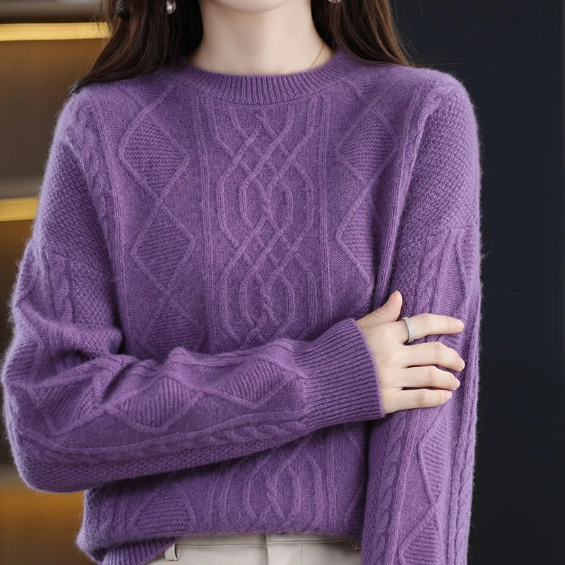 «Women's Sweater Pure Wool Round Neck Pullover Long Sleeve Loose Autumn Winter 2022 New Twist Knit Cashmere Sweater Thickene Tops» по лучшей цене на рынке! Всего за 44$ (4180рублей)