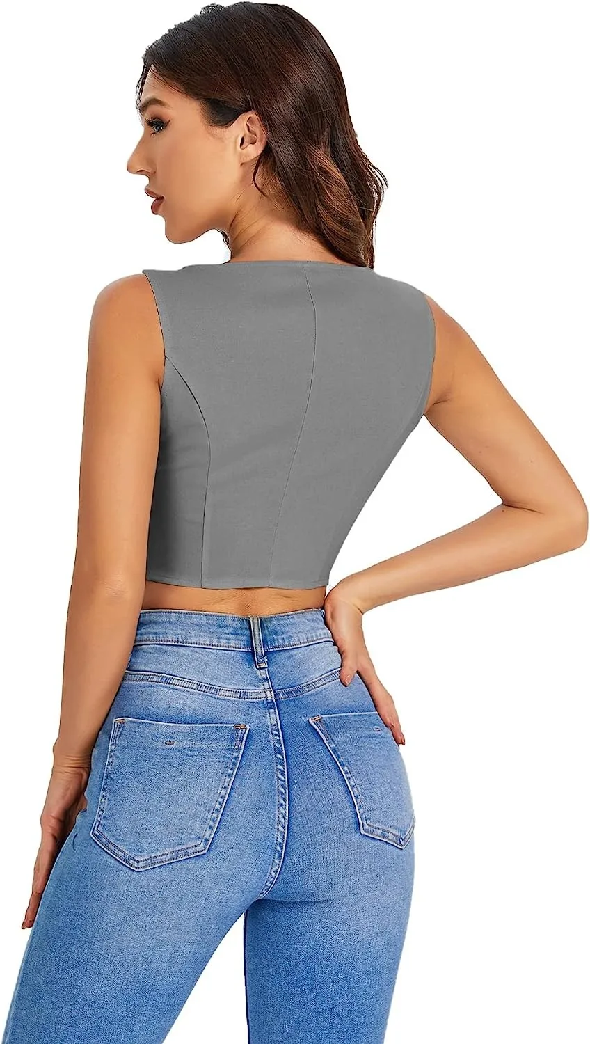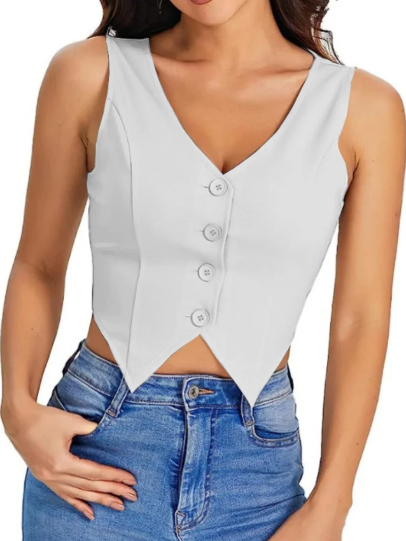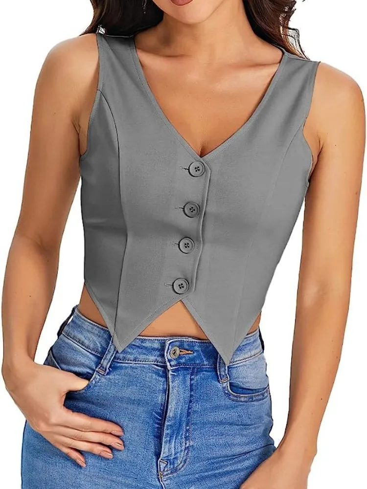 wlQpbzTryHere you can buy Women's Vest V Hem Button Front Drawstring Short Jacket V Neck Sleeveless Solid Color Simple Wide Shoulder Strap Blazer Top with free delivery to your post office.
