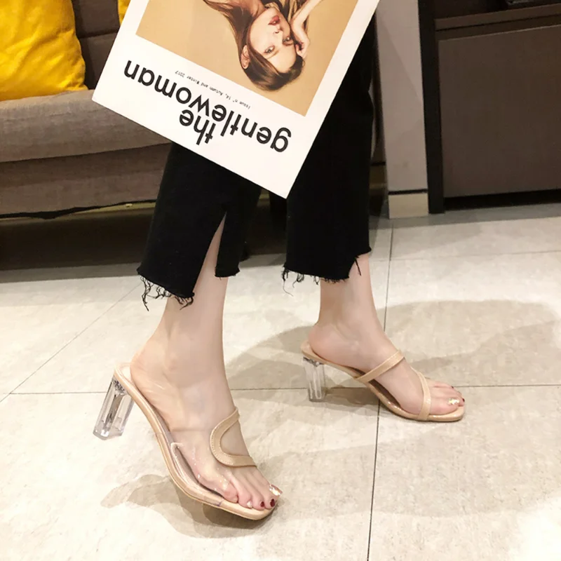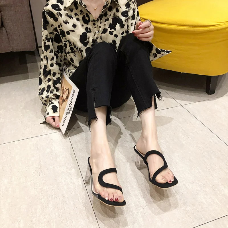 «Women's transparent sandals open toe high heels thick heel slippers summer fashion shoes black beige Zapatillas Mujer» по лучшей цене на рынке! Всего за 12$ (1140рублей)