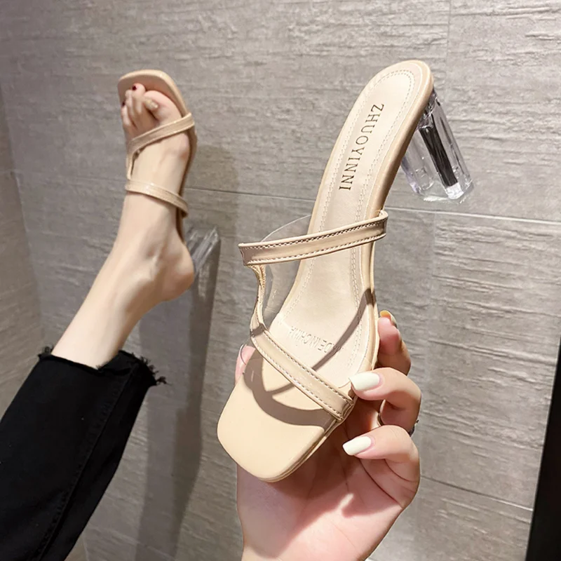 YRIZJUhJIUДолго искали Women's transparent sandals open toe high heels thick heel slippers summer fashion shoes black beige Zapatillas Mujer, но не могли найти? Предоставляем вашему вниманию Women's transparent sandals open toe high heels thick heel slippers summer fashion shoes black beige Zapatillas Mujer по лучшей цене на рынке!