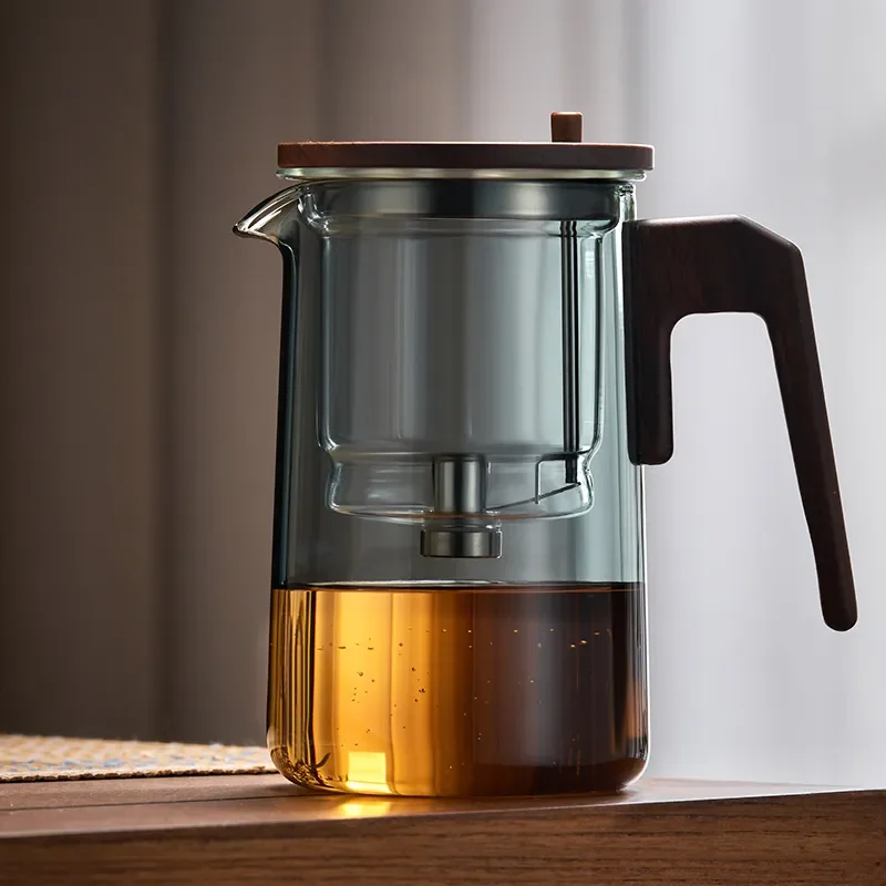Wood-Handled Heated-Resistant One-Button-Filtering Transparent Scented Glass Tea Pot Teaware Perfect for Making Tea - Купить с бесплатной доставкой
