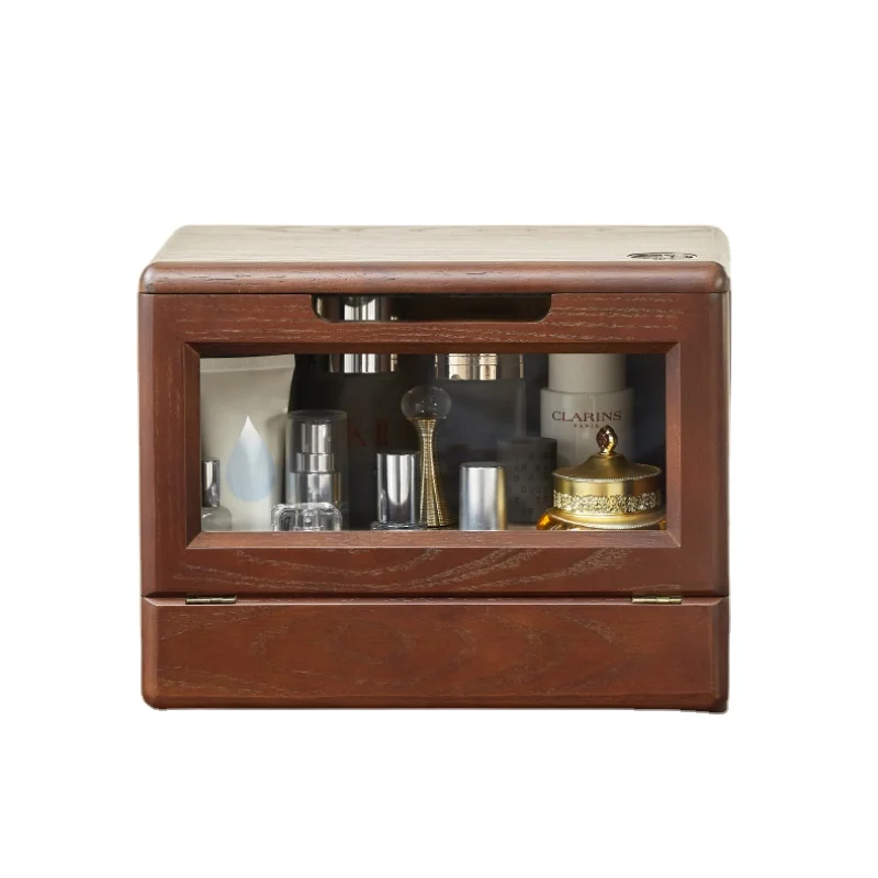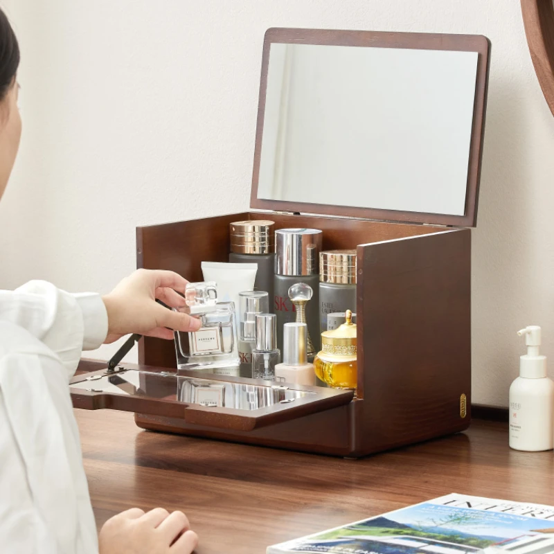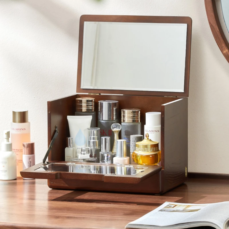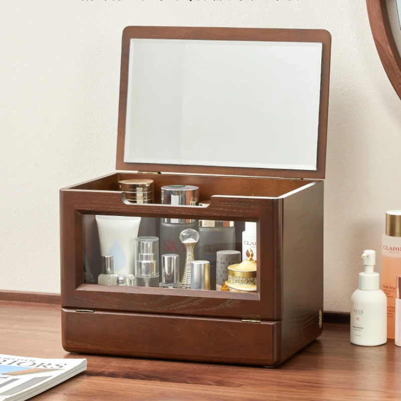 Wood Tape Mirror Storage Boxes Dustproof Visual Makeup Organizer Multifunctional Storage Makeup Clamshell Design Makeup Case - Купить с бесплатной доставкой