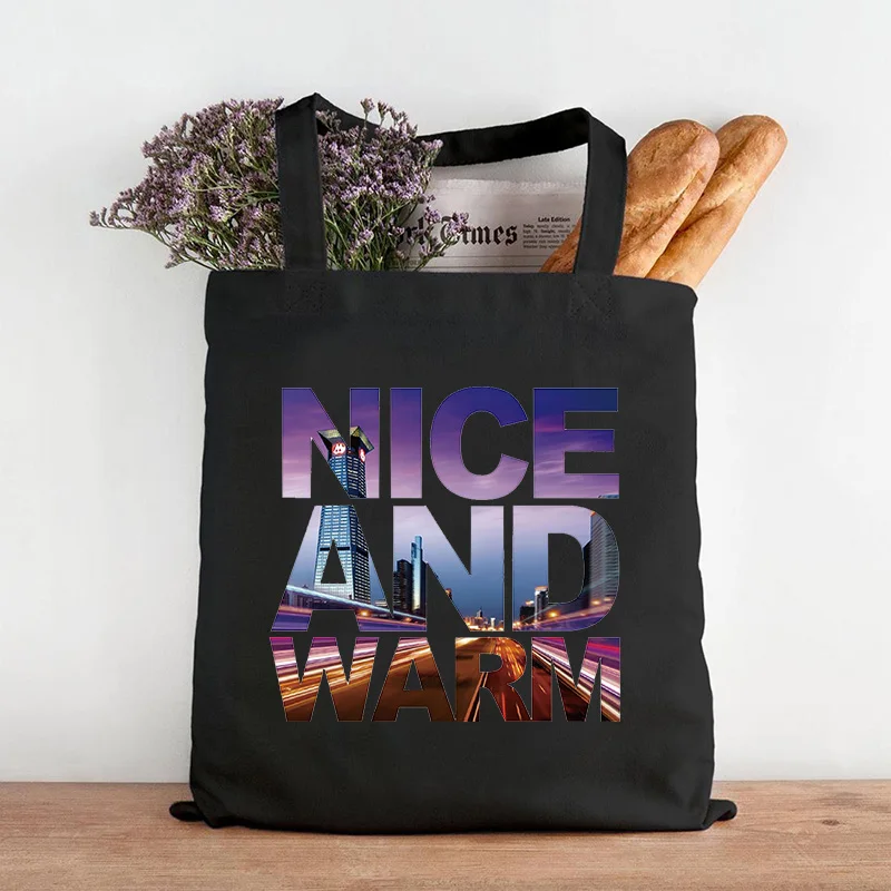 "Word Print Tote Bag Canvas Bag Eco Shopping Bag Daily Use Foldable Handbag Large Capacity Canvas Tote Women Canvas Bag" * Buy Now Just For 5$