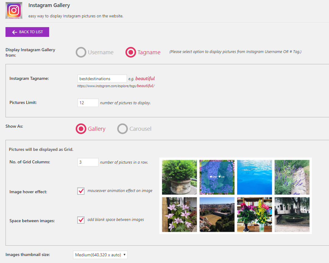 Плагин имеет бесплатную и платную (от 39$) версию. Платная версия отличается некоторыми дополнительными функциями: можно добавлять не только аккаунты, но и выводить изображения по хештегам или геолокации, представить галерею в виде карусели и т.д. Бесплатная версия этого плагина дает возможность: