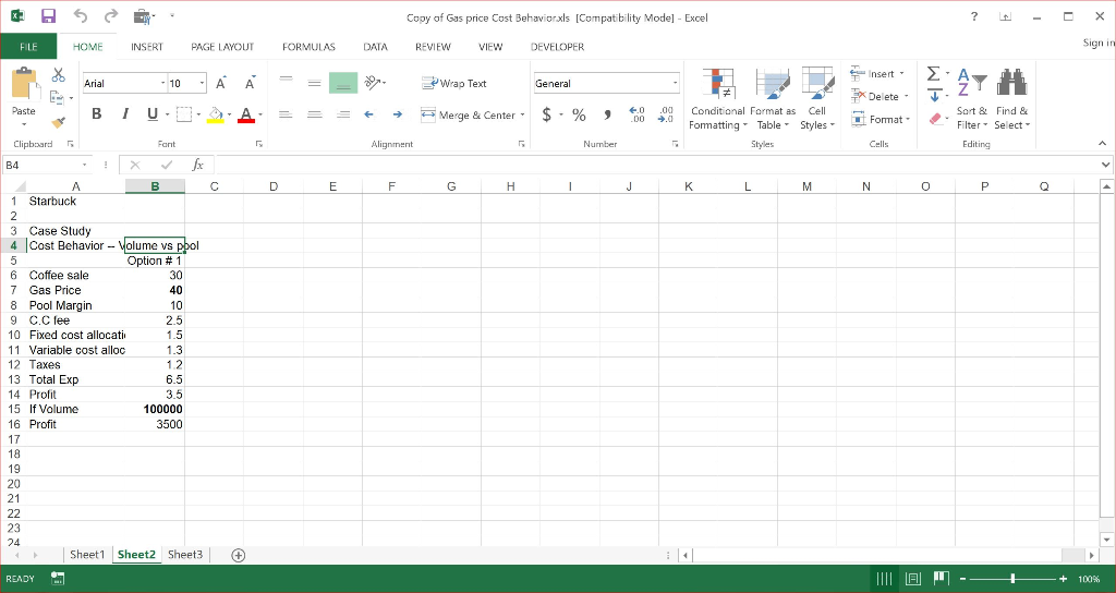 Working in excel