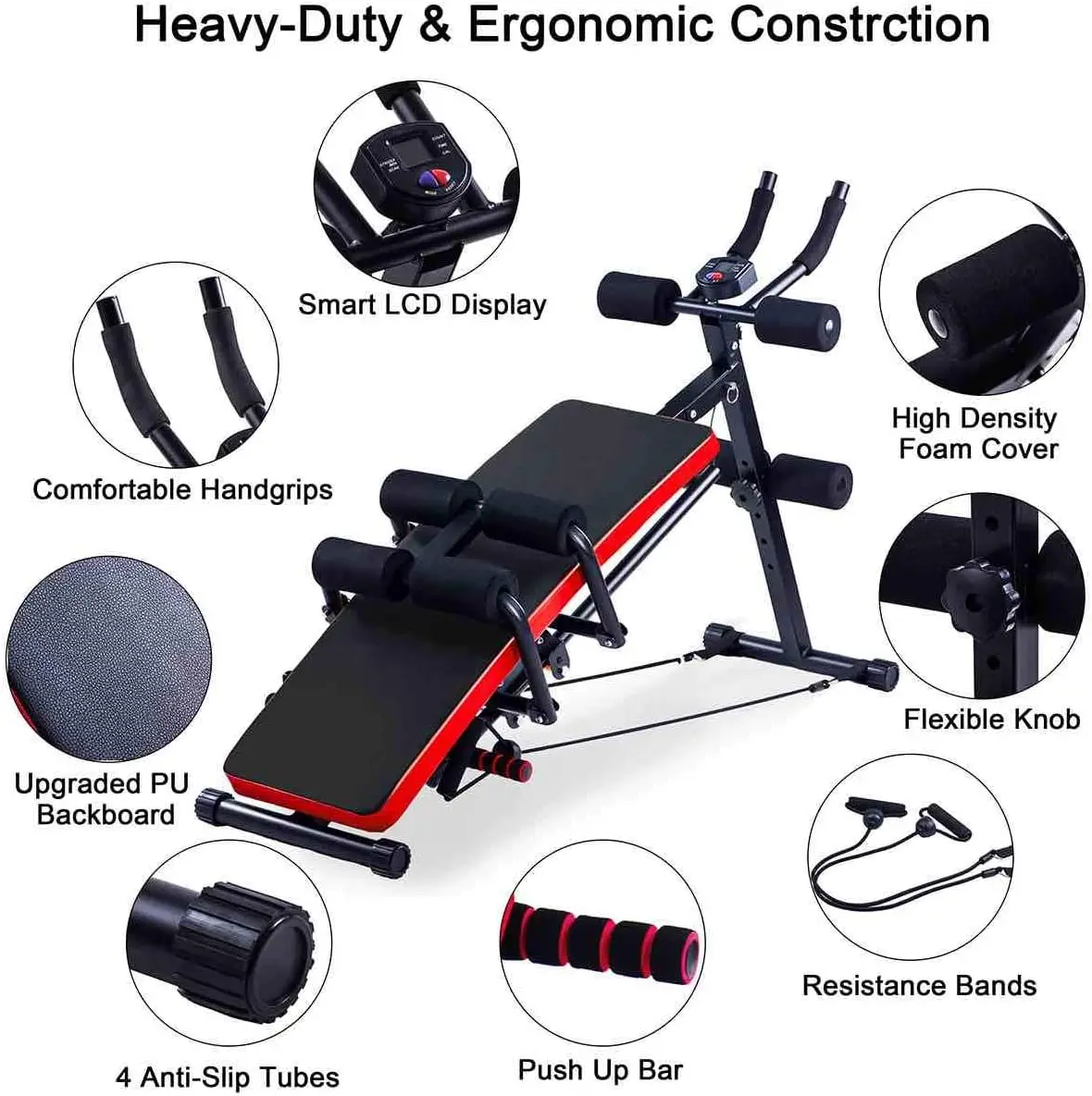 Workout Machine, Abs Exercise Equipment for Home Gym,Adjustable Sit Up Bench Strength Training Abdominal Cruncher,Foldable Work - Купить с бесплатной доставкой