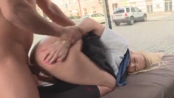 Model-style babe shows sexy upskirt view on the stairs