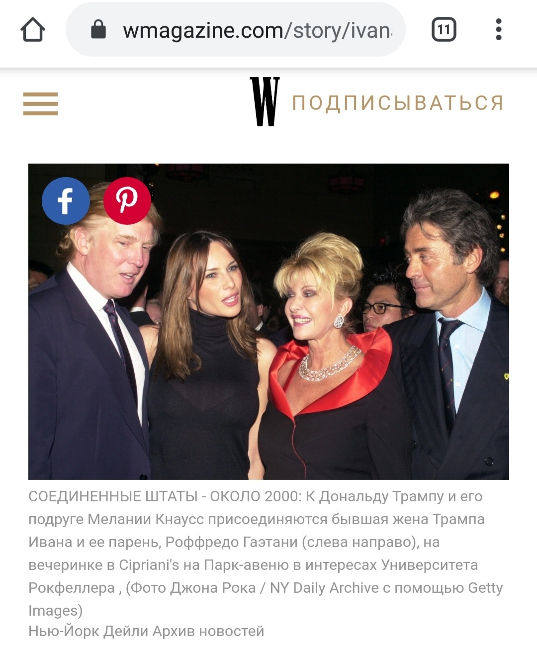 Дональд Трамп вместе с принцем Роффредо Гаэтани и их жёнами Мелания Трамп и Ивана Мари Трамп-Гаэтани: