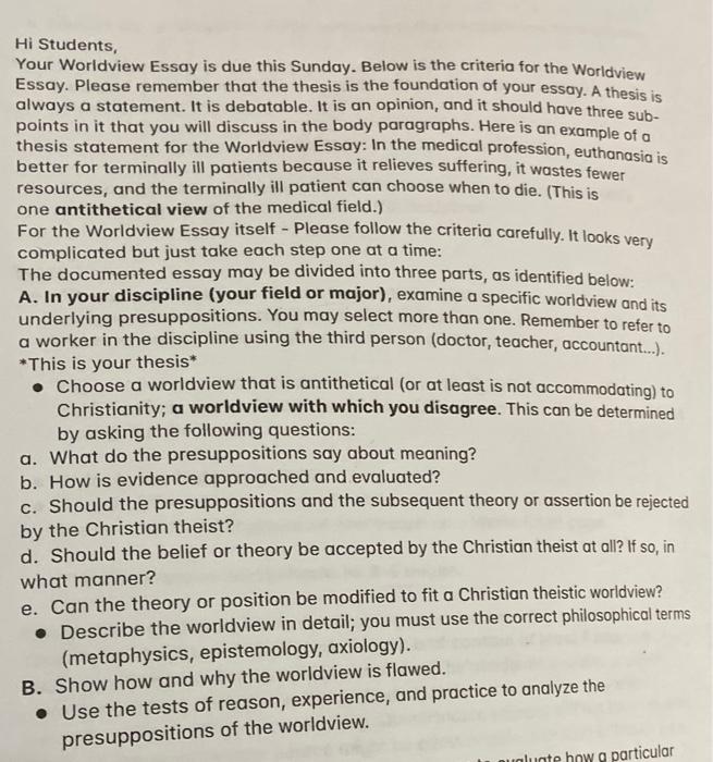Worldview Essay | Personal Worldview Essay With an Example . . .