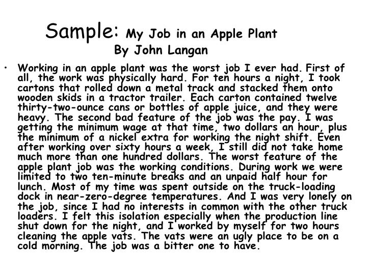 Free Essays on Worst Job I Ever Had - Brainia .com