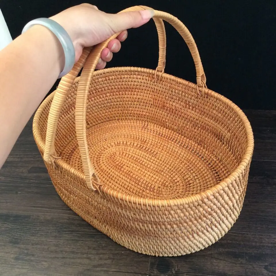"Woven Storage Basket Handmade Rattan Portable Fruit Basket Candy Snack Tray Storage Box Kitchen Accessories Storage Organizer" * Buy Now With Free Shipping Just For $34