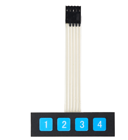 Для управления режимами я решила использовать кейпад из 4х кнопок. С его помощью можно устанавливать 8 различных режимов за счет кратковременных и длительных нажатий. (См. фото) Для его подключения были использованы пины D5, D6, D7, D8, D9, где D5 - соответствует первому пину кейпада (вывод шлейфа со стороны цифры 1).