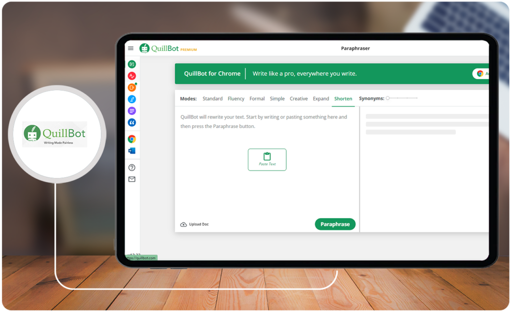Quillbot is an AI editing tool for academics and publishers. It includes a paraphraser, summarizer, grammar checker, and plagiarism checker. Google Docs, MS Word, and Chrome extensions allow you to use Quillbot more efficiently.