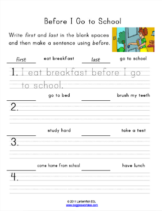 Write sentences about your school life