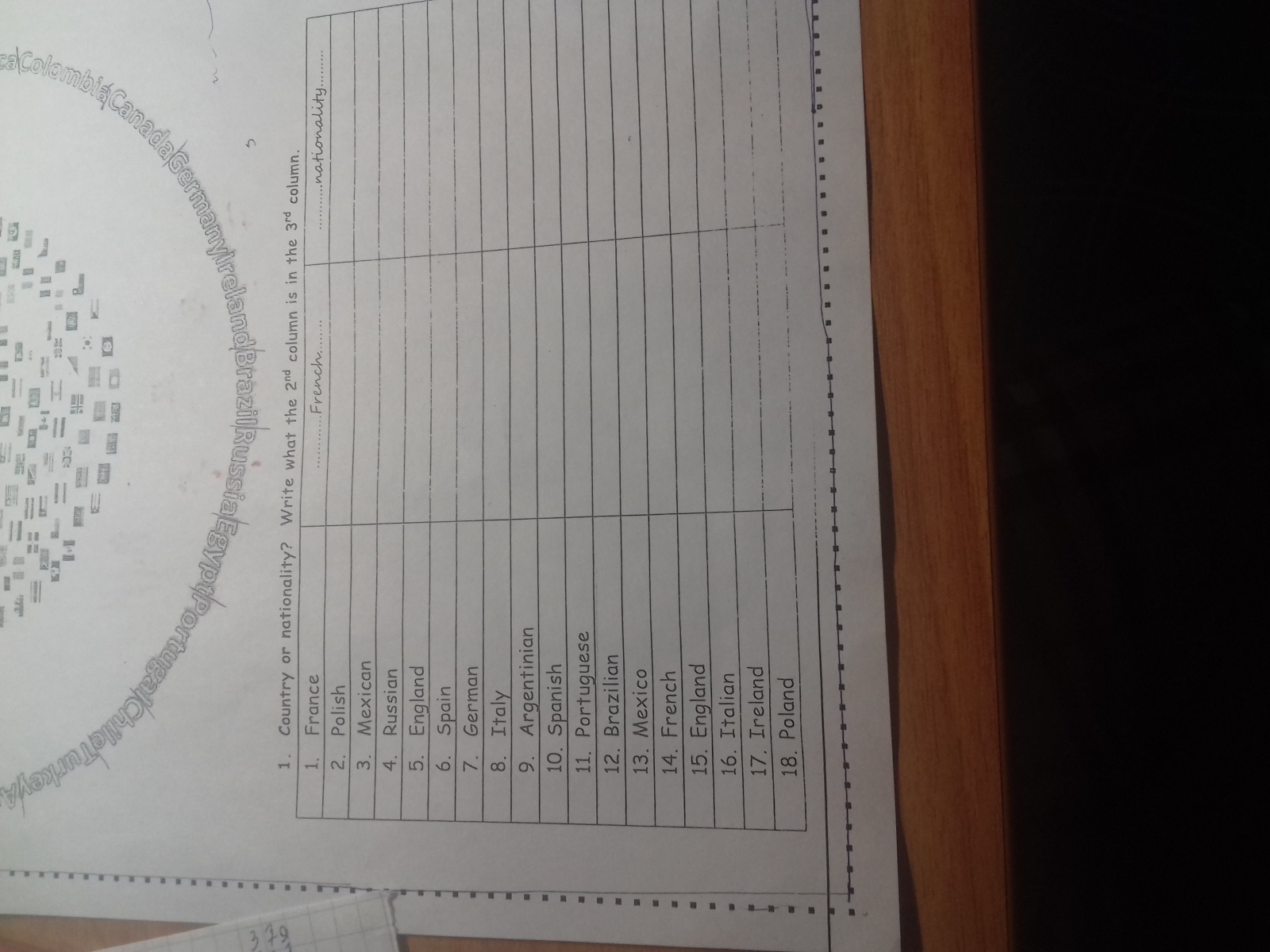 Write the nationalities ireland