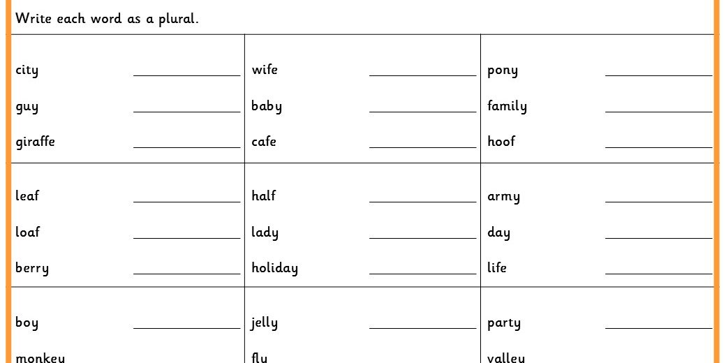 Write the plural form of each noun