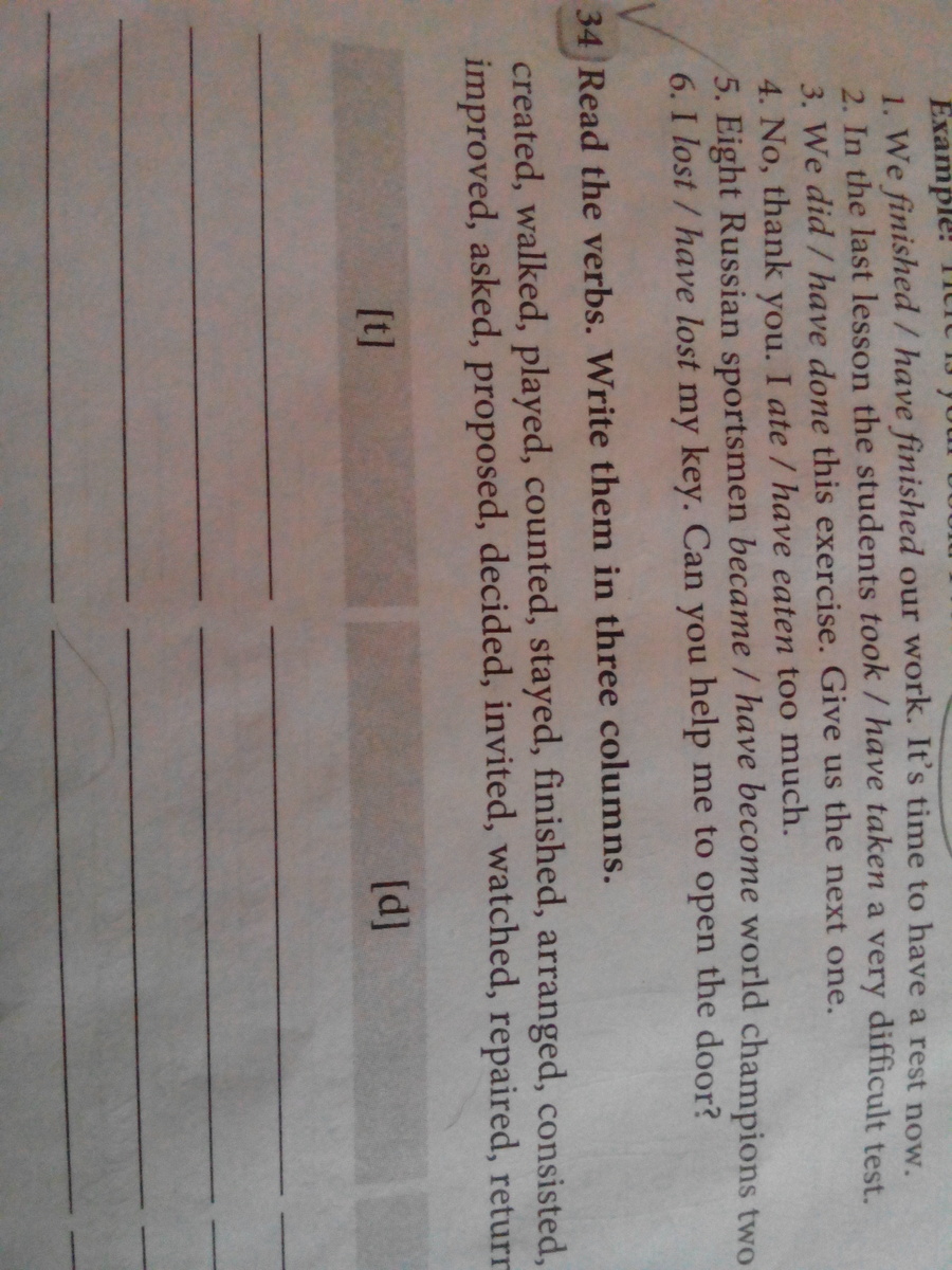 Write the verbs in three columns 113 фото