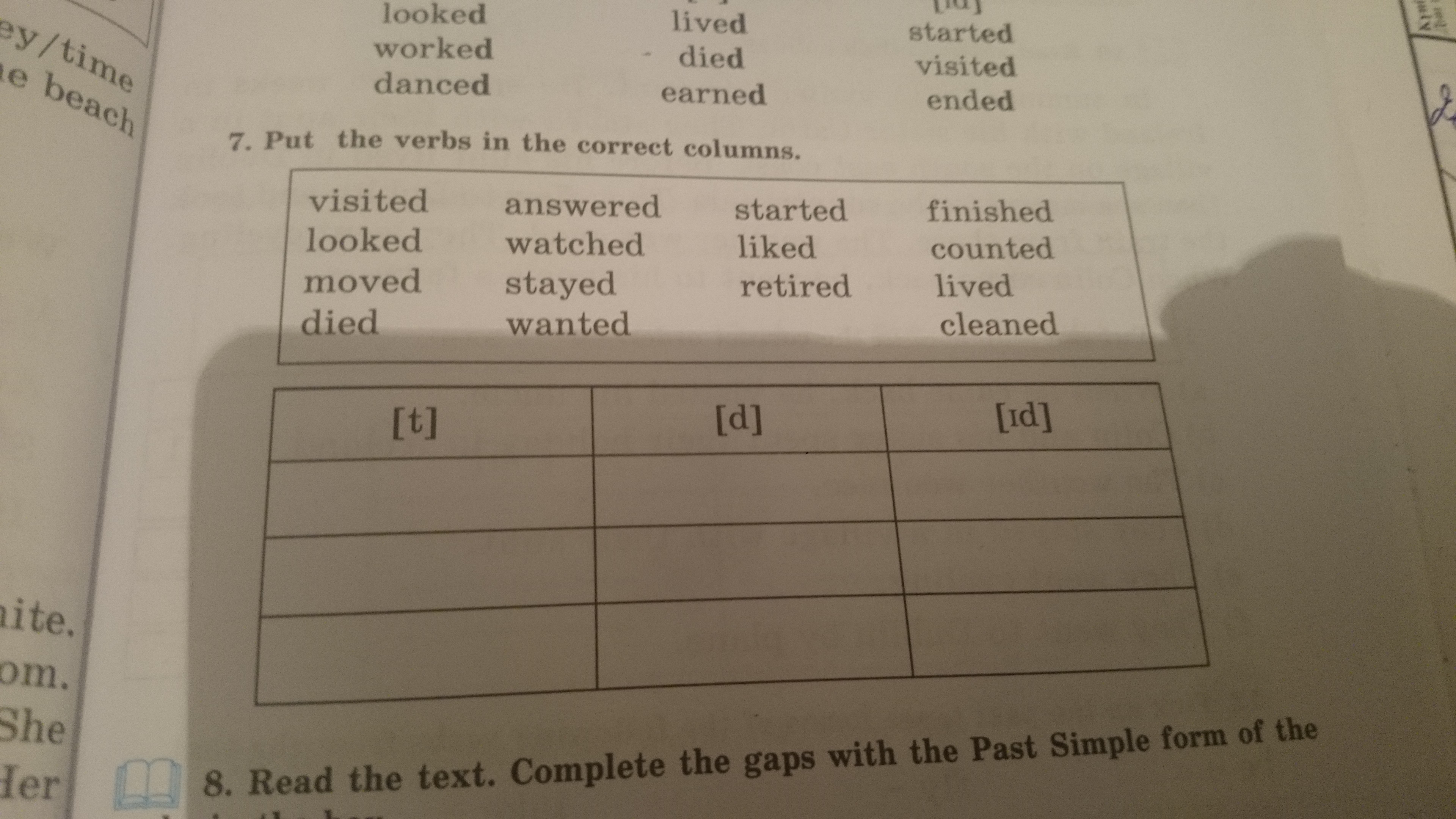 Write the verbs in three columns