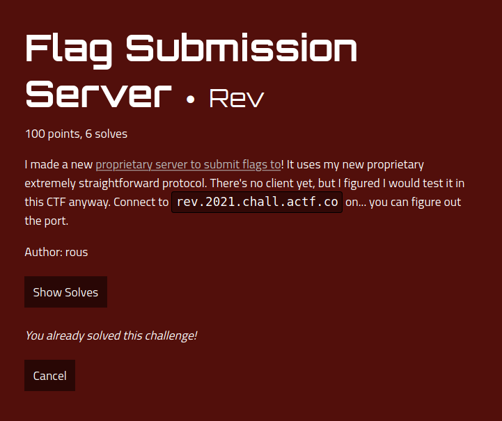 Write-up Flag Submission Server (angstromctf)