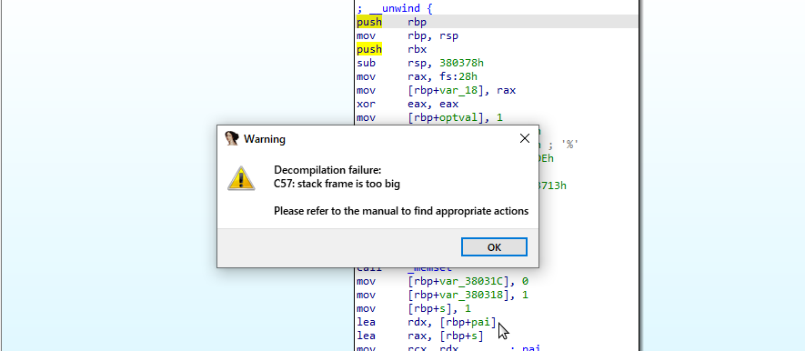 For now, ignore them, send it 22 different bytes to understand where the server is using which parts of the packet. Since the flag comparison is the most interesting part, let's start with it. After debugging and exploring the stack, we will understand that the flag char is compared with the 9th byte of the packet, we will try to pass this check for at least the first char. We put 9 byte of packet "a" (flag format = actf{...}) and ... The server terminates the connection, yippee! Now we know the first letter of the flag (if 9 bytes != "a", then the server does not break the connection). Again, looking at the ASM code, you can understand that the disconnect occurred due to the fact that the value of rbp-0x380358==0.