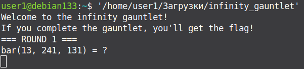 When the program starts, it offers to guess the result of either one of the arguments of some function: bar() or foo().