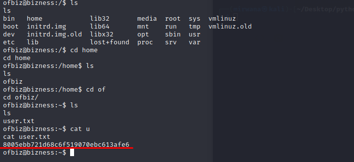 После исследования доступных каталогов находим флаг юзера =)