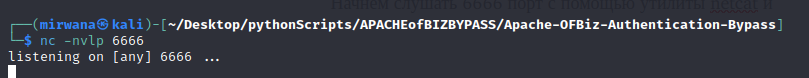Начнем слушать 6666 порт с помощью утилиты netcat.