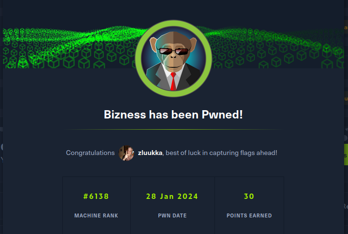 @zluukka (Egor Orshlet)Всем привет, я начал потихоньку вкатываться в тему тестирования на проникновение и CTF. В дальнейшем буду выкладывать свои райт-апы на машинки , которые буду изучать и ломать. Сегодня хочу разобрать взлом одной тачки на HTB, которая называется Bizness.