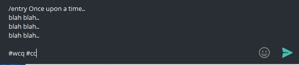 1. Open @WritersClubBot and write /entry <your entry> as shown in the picture above. You can copy paste after /entry rather than typing the whole entry.