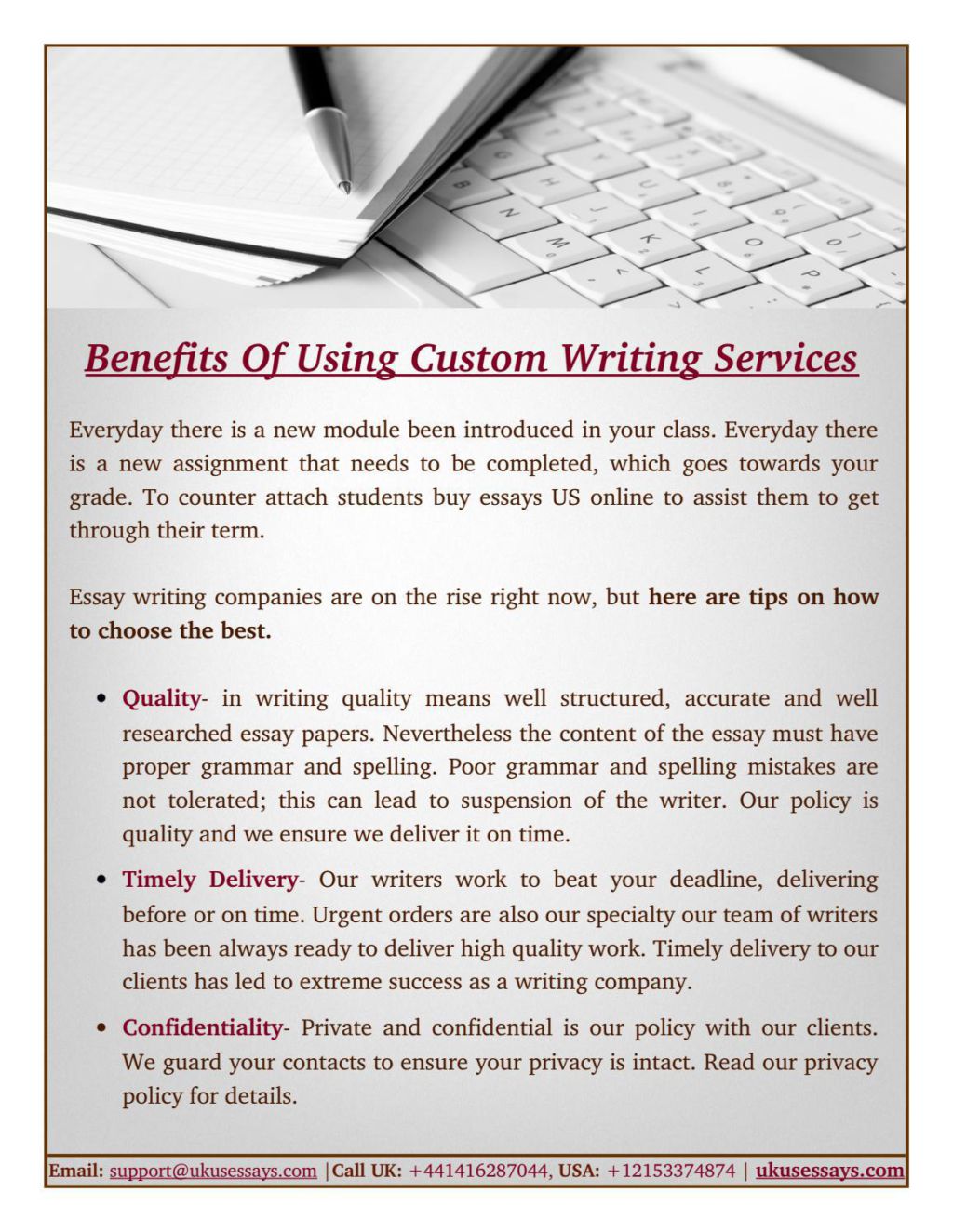 Essay Writing Service by Native UK Writers . Writing any kind of paper requires numerous skills from an author . You should be keen on grammar, have big vocabulary, and even talent . So if you can't be proud of having all the skills mentioned above, you cannot be sure in the quality of the final work .