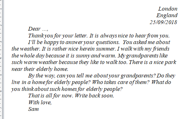 Writing letter questions