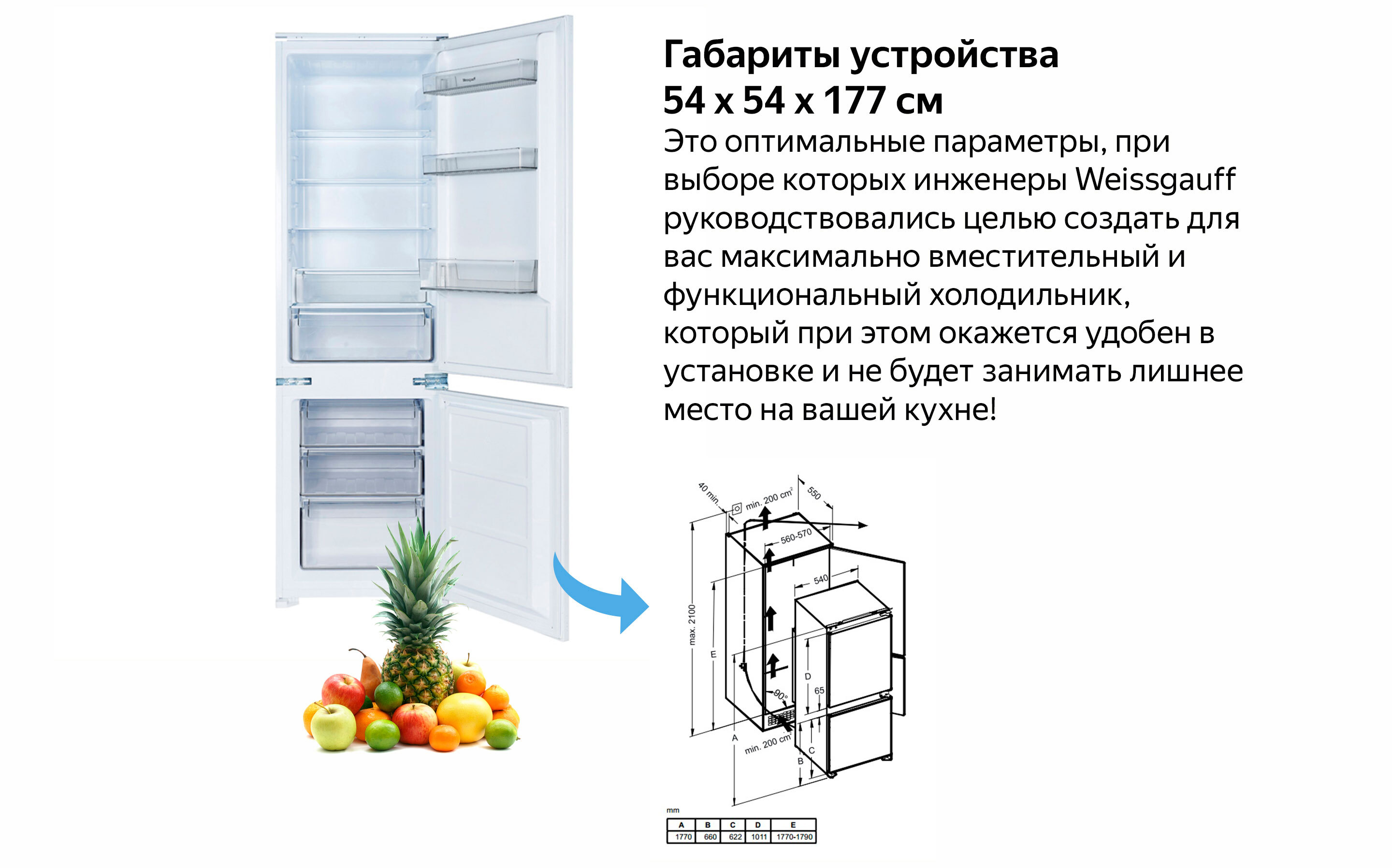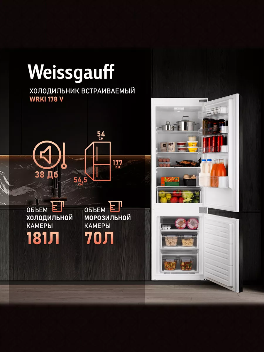 Встроенный холодильник 2 метра