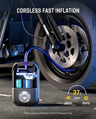 "X8 Portable Tire Inflator, Lightweight for Motorcycle tire, Cordless Air Compressor , Rechargeable , 150PSI with Digital Screen" * Buy Now With Free Shipping Just For $65