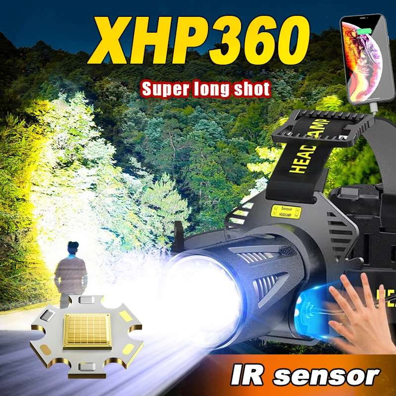 XHP360 Sensor LED Headlamp Zoomable USB Rechargeable Headlight Head Flashlight Outdoor Waterproof Fishing Emergency Power Bank - Купить с бесплатной доставкой