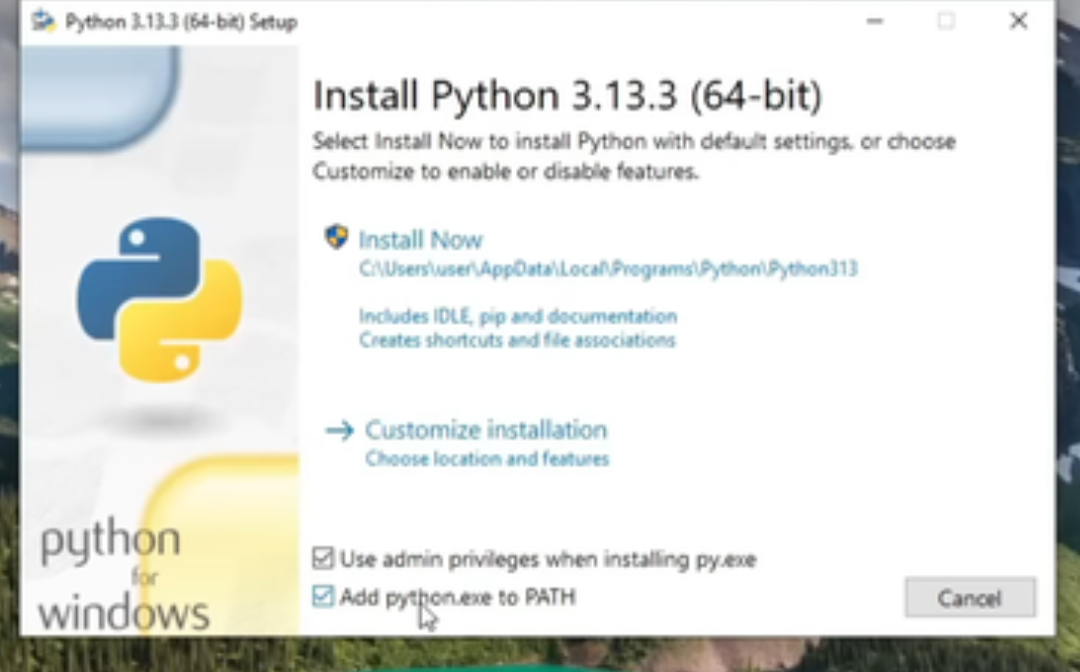 3. Run 'python-3.13.5-amd64.exe'