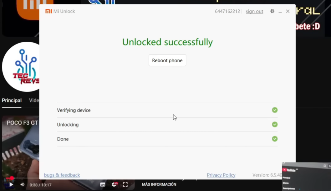 (You need to have a SIM with mobile data (You must disable WiFi) and previously SIM activated, and the other steps indicated in » My Unlock Status, according to Xiaomi)