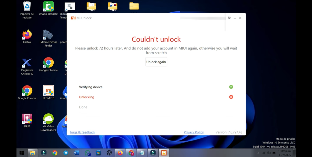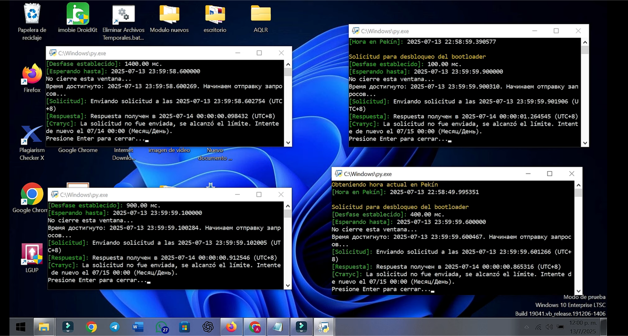 - After complete STEP 12. It's very important that no matter what the script results (Sometimes you get "authorization granted successfully" or something like that, and other times you get "limit reached" or "unlock not sent")