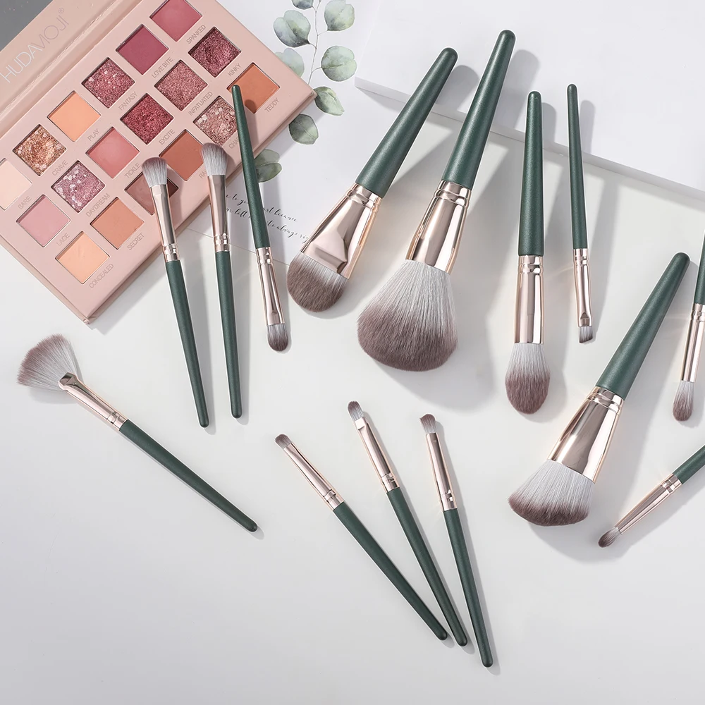 "XINYAN 14pcs Green Makeup Brushes Set Cosmetic Foundation Powder Blush Eye Shadow Blend Wooden Makeup Brushes Tool Kit Maquiagem" * Buy Now Just For 8$