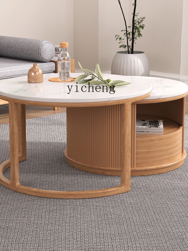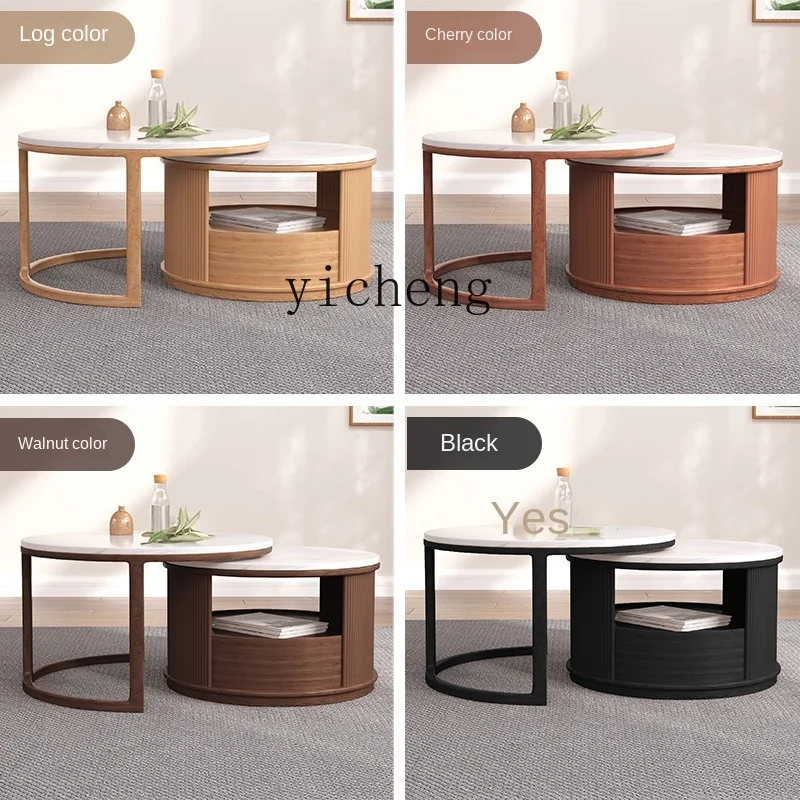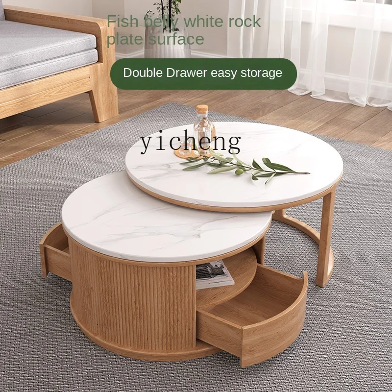 evdHRHoSHere you can buy XL Solid Wood Stone Plate round Coffee Table Size Combination Retractable Push-Pull Side Table Storage with free delivery to your post office.