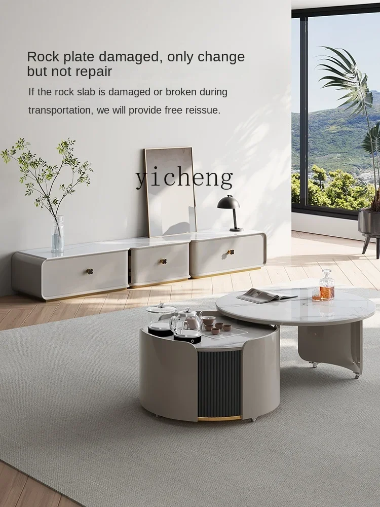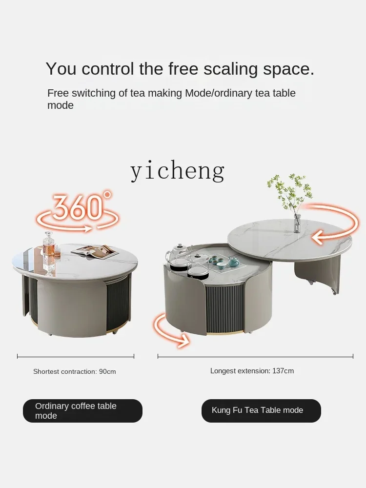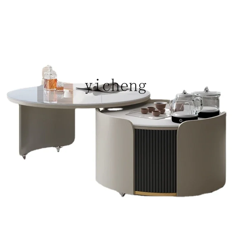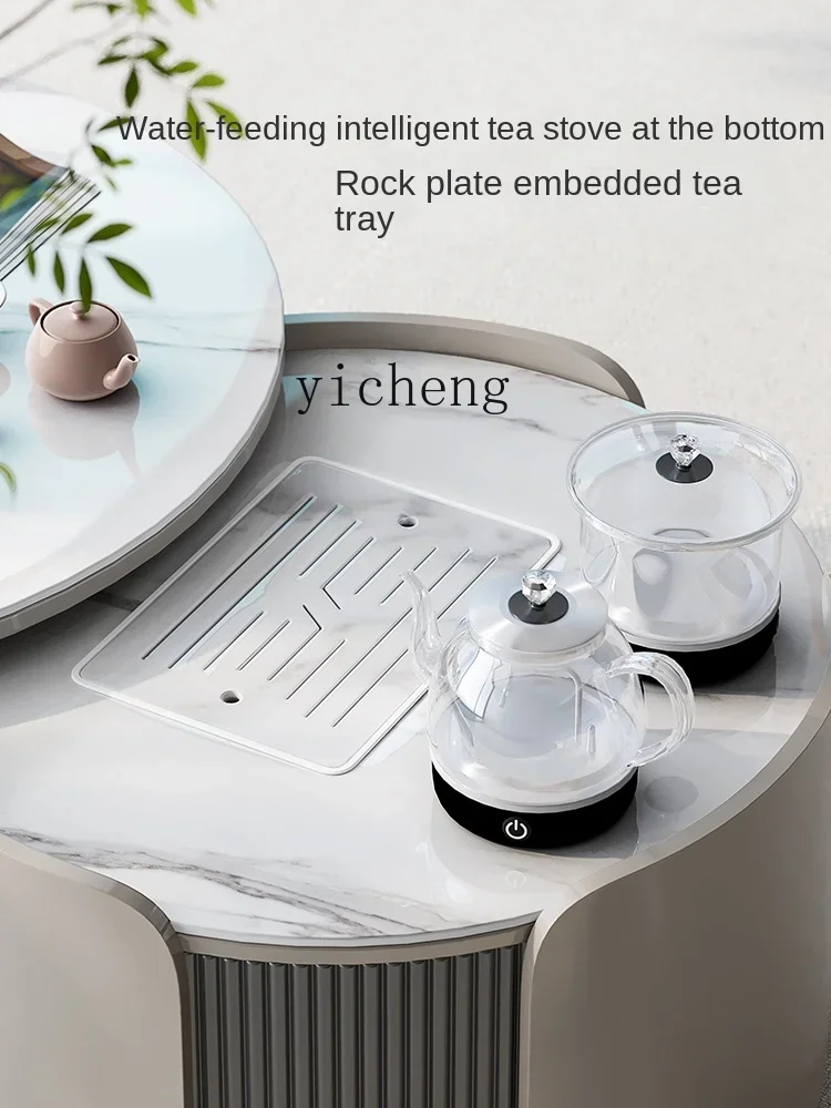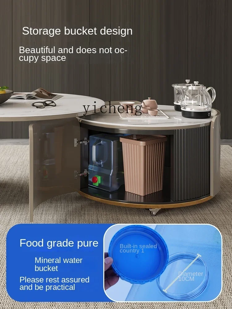 XL round Stone Plate Kung Fu Tea Table Light Luxury Italian Living Room Movable Tea Table Tea Making Integrated - Купить с бесплатной доставкой