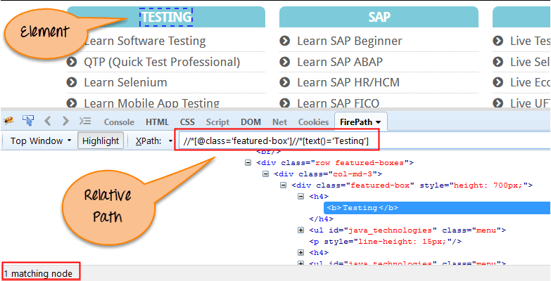 Относительный Xpath начинается с середины структуры HTML DOM. Он начинается с двойной косой черты (//). Он может искать элементы в любом месте веб-страницы, это означает, что нет необходимости писать длинный xpath. Эти XPath могут выбирать элементы в любом месте, которое соответствует критериям выбора и не обязательно начинается с корневого узла.